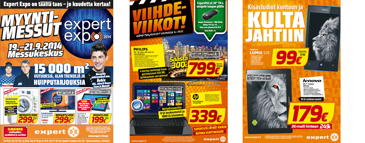 Studioviesti on ollut mukana rakentamassa menestyvää Expert-kodinkoneketjua vuodesta 2007 alkaen. Valtakunnallisen printtimainonnan lisäksi olemme saaneet olla mukana tapahtumamarkkinoinnin suunnittelussa, joista merkittävimpänä Messukeskuksessa järjestettävät vuotuiset Expert Expo -myyntimessut.